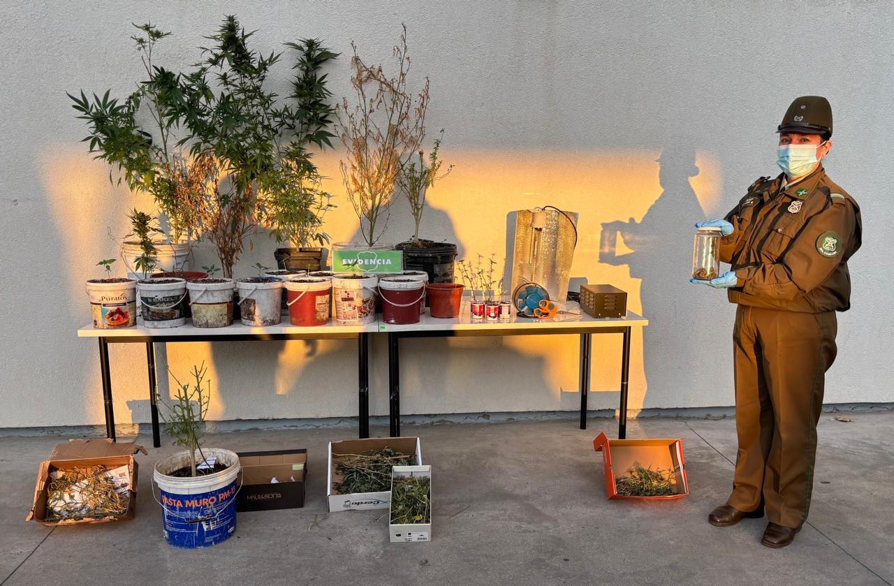 Durante la semana, momento en que Carabineros de la 3era.Comisaría de Parral realizaba labor de seguridad y prevención por la comuna, detectaron que en el patio de un domicilio particular en las cercanías del sector Buenos Aires, existía un cultivo de marihuana; lo que fue una realidad, ya que los funcionarios policiales tras indagar en el lugar determinado, según los protocolos establecidos, encontraron plantas en el patio y un cultivo indoor en el segundo piso.